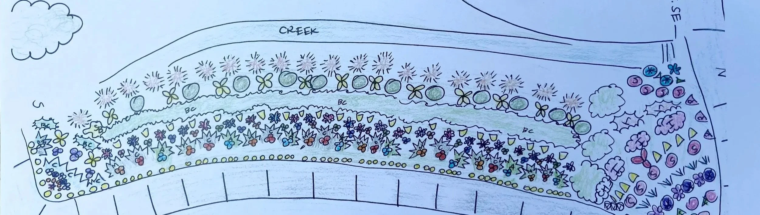 An Artful Headstart to Native Restoration! Due to the proximity of the planting area to the walking path, we have elected to take a more organized and aesthetically pleasing approach to boost curb appeal.